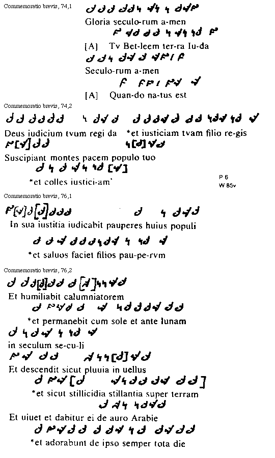 [Commemoratio brevis, 74,2; text: Deus iudicium tvum regi da *et iusticiam tvam filio regis, Suscipiant montes pacem populo tuo *et colles iusticiam [P 6, W 85v]]