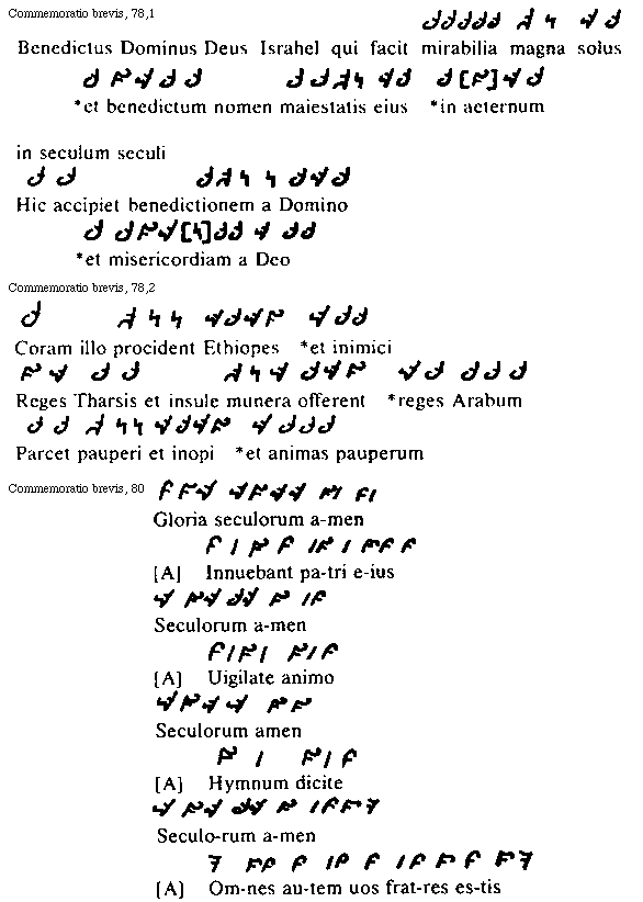[78][Commemoratio brevis, 78,1; text: Benedictus Dominus Deus Israhel qui facit mirabilia magna solus *et benedictum nomen maiestatis eius *in aeternum in seculum seculi, Hic accipiet benedictionem a Domino *et misericordiam a Deo]