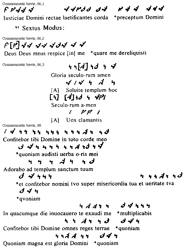 [Commemoratio brevis, 88; text: Confitebor tibi Domine in toto corde meo *quoniam audisti uerba oris mei, Adorabo ad templum sanctum tuum *et confitebor nomini tvo super misericordia tua et ueritate tva *qvoniam, In quacumque die inuocauero te exaudi me *multiplicabis, Confitebor tibi Domine omnes reges terrae *quoniam, Quoniam magna est gloria Domini *quoniam]