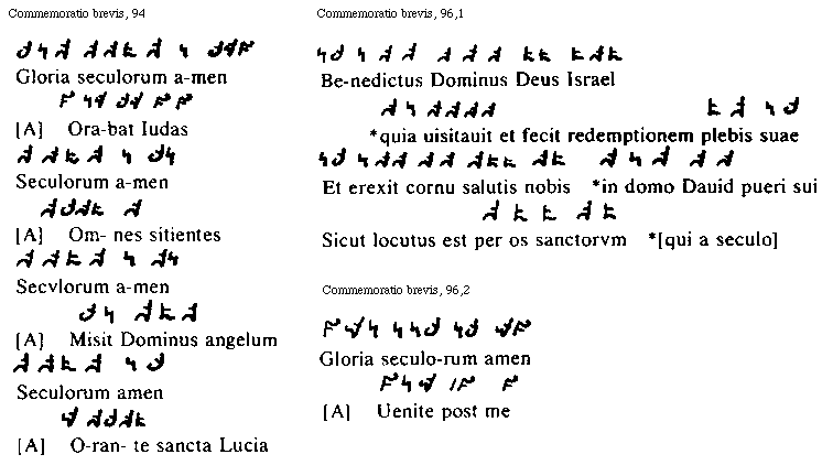 [Commemoratio brevis, 32; text: tonus, semitonium, Gloria et nunc et semper et in secula seculorum amen, [Antiphona] Evge serue bone [M2 174]]