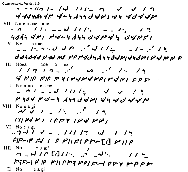[118][Commemoratio brevis, 118; text: Noeaeane, Noeane, Noeanoeane, Noanoeane, Noeagi, I, II, III, IIII, V, VI, VII, VIII]