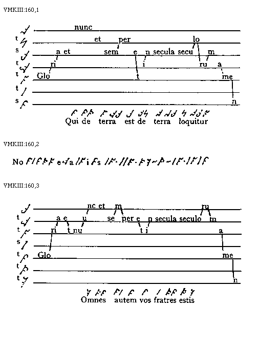 [VMKIII:160,1; text: tonus, semitonium, Gloria et nunc et semper et in secula seculorum amen, Qui de terra est de terra loquitur]