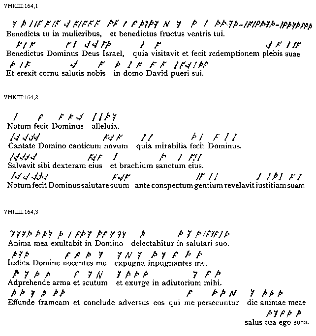 [VMKIII:164,2; text: Notum fecit Dominus alleluia. Cantate Domino canticum novum quia mirabilia fecit Dominus. Salvavit sibi dexteram eius et brachium sanctum eius. Notum fecit Dominus salutare suum ante conspectum gentium revelavit iustitiam suam]