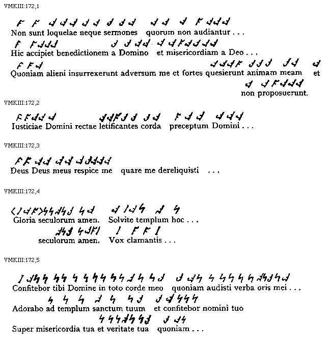 [VMKIII:172,1; text: Non sunt loquelae neque sermones quorum non audiantur, Hic accipiet benedictionem a Domino et misericordiam a Deo, Quoniam alieni insurrexerunt adversum me et fortes quesierunt animam meam et non proposuerunt]