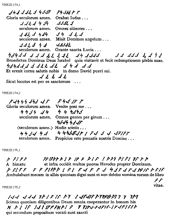 [VMKIII:174,2; text: Gloria seculorum amen. Venite post me, Omnes gentes per girum, Hodie scietis, Propicius esto peccatis nostris Domine]