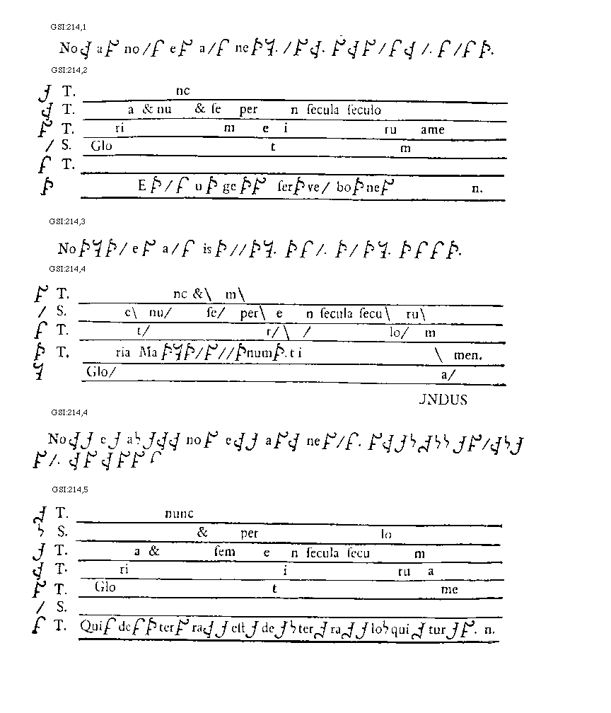 [GSI:218,5; text: Primus tonus. Gloria. seculorum amen. Ecce nomen Domini.]