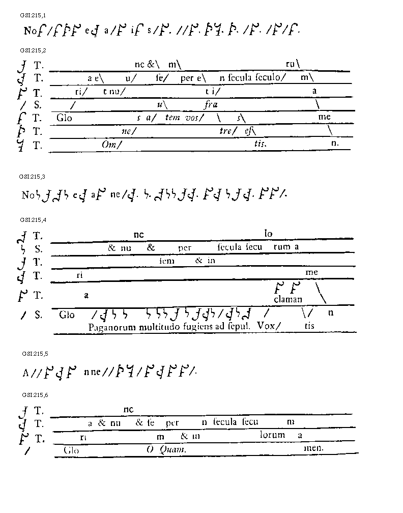 [GSI:215,4; text: S. T. Gloria et nunc et semper et in secula seculorum amen, Paganorum multitudo fugiens ad sepulcrum, Vox clamantis]