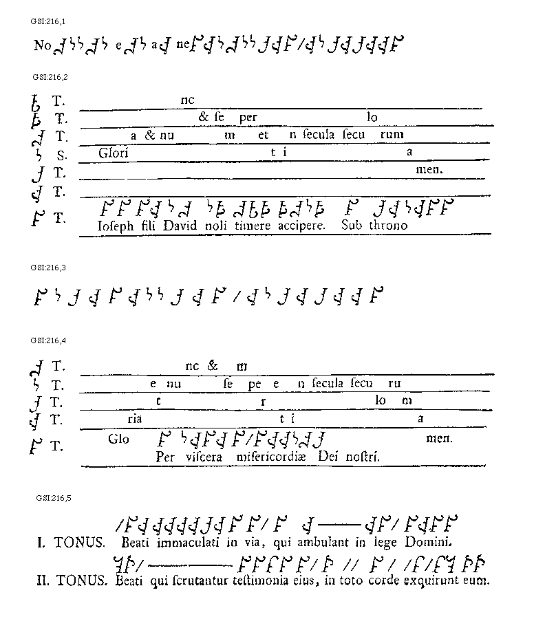 [GSI:216,5; text: Primus tonus. Beati immaculati in via, qui ambulant in lege Domini. Secundus tonus. Beati qui scrutantur testimonia eius, in toto corde exquirunt eum.]