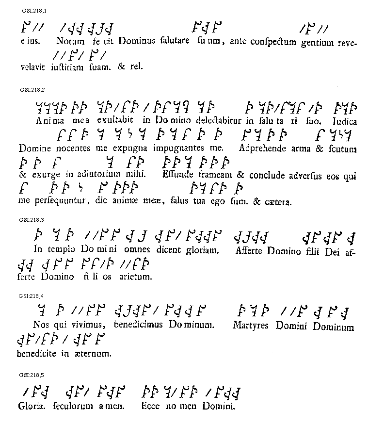 [218][GSI:218,1; text: eius. Notum fecit Dominus salutare suum, ante conspectum gentium revevelavit iustitiam suam. Et reliqua]