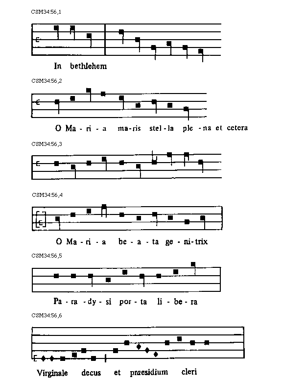 [CSM34:56,2; text: O Maria maris stella plena et cetera]