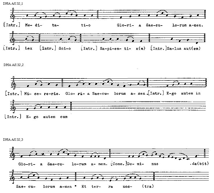 [DMA A/I:32,3; text: Gloria Saeculorum amen. [Communio] Dominus da(bit), Saeculorum amen, Et terra nos(tra)]