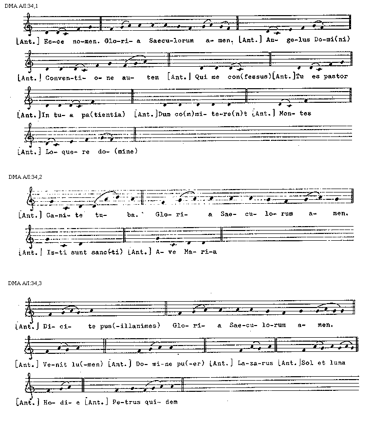[DMA A/I:34,2; text: [Antiphona] Canite tuba. Gloria Saeculorum amen. Isti sunt sanc(ti), Ave Maria]