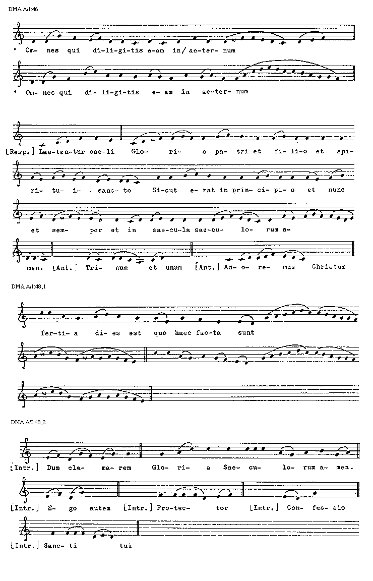 [DMA A/I:48,2; text: [Introitus] Dum clamarem, Gloria Saeculorum amen, Ego autem, Protector, Confessio, Sancti tui]