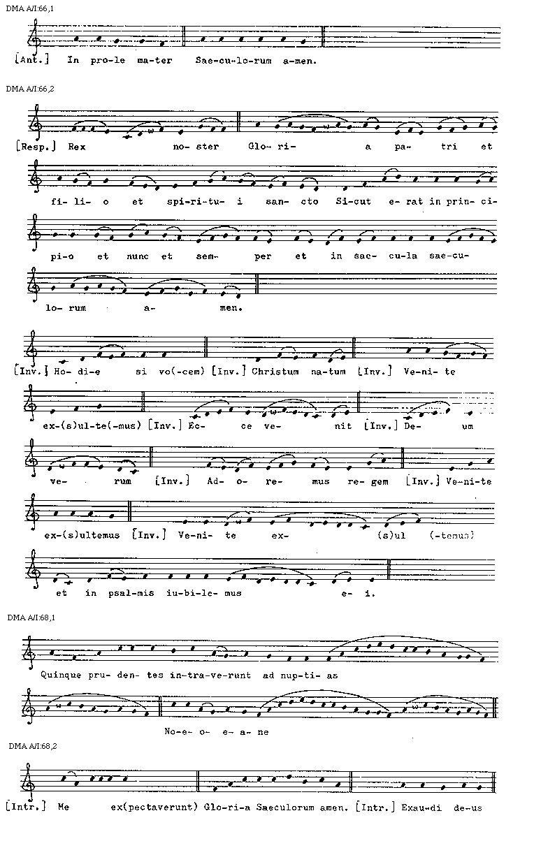 [DMA A/I:66,1; text: [Antiphona] In prole mater, Saeculorum amen.]