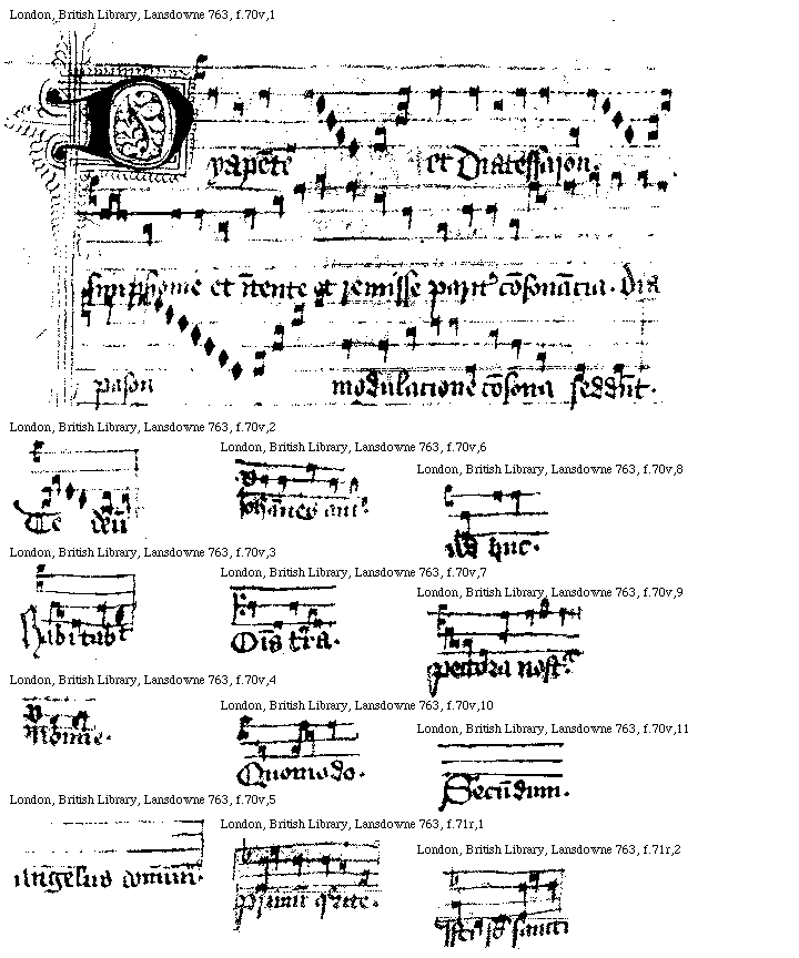 [f.[[69]]70v][London, British Library, Lansdowne 763, f.70v,1; text: Dyapente et Diatessaron. simphonie et intente et remisse pariter consonancia. Diapason modulacione consona reddunt.]