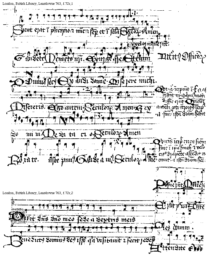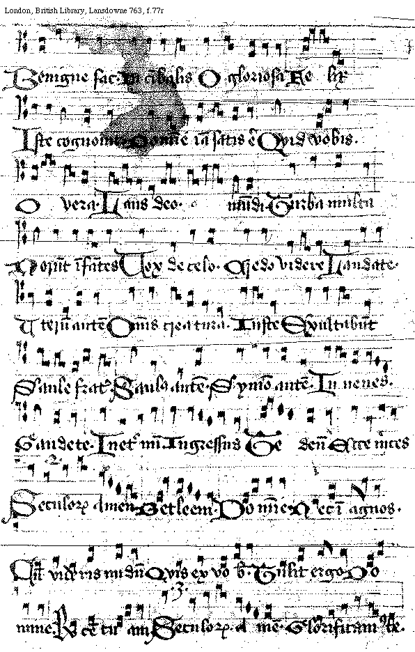 [London, British Library, Lansdowne 763, f.70v,2; text: Te Deum]