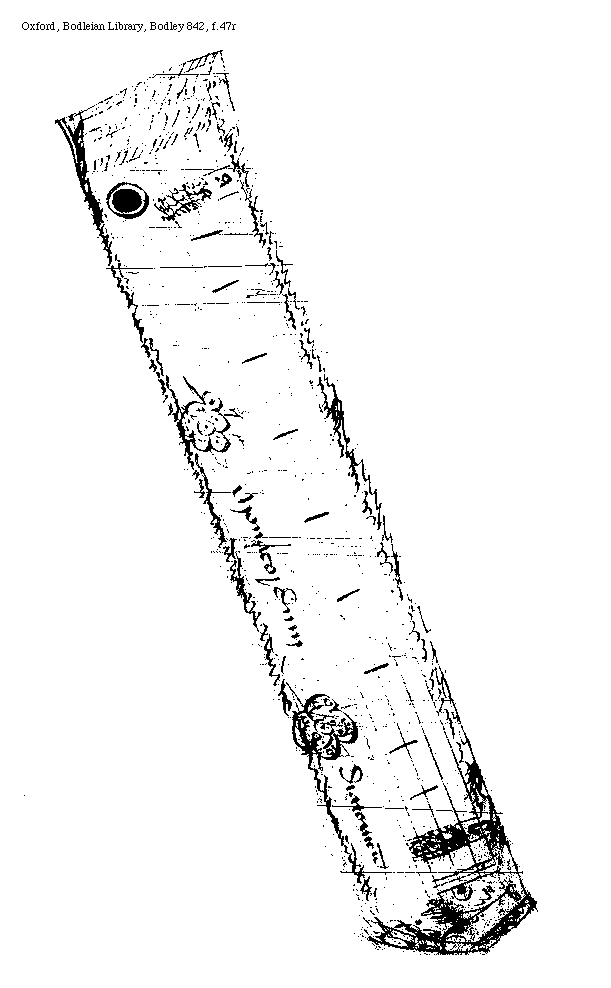 [f.47v]continet duos tonos et unum semitonium Iam restat facere unum tonum quod sic facies Deinde ut prius f.b. in nouem partes equales cuius prima pars est f.g qui est unus tonus uel diuide a.b. in tres partes equales cuius prima pars est a.g. quod est diapente constans ex tribus tonis et uno semitonio ex quo patet quod f.g. est tonus uel sic diuidas c.b. in quatuor partes equales et finis prima partis erit g. ut prius. Iam restat simul facere unum tonum ut prius scilicet diuidendo g.b in nouem partes equales cuius prima diuisio erit g.h. qui est alius tonus. uel diuidendo c.b. in tres quod idem est Iam restcit facere unum semitonium quod sic facies scilicet diuidendo f.b. in quatuor partes cuius prima pars est f.i. qui est diatessaron et per consequens h.i. est semitonium Iam restat facere unum tonum sic diuide i.b. in nouem partes cuius prima diuisio est i.k. qui est tonus uel diuide g.b. in quatuor uel diuide f.b. in tres uel diuide a.b. in duo que omnia idem sunt Nam prima proporcio cuius habet istorum terminabit in k Isto modo poteris facile quot tonos et quot semitonia uolueris De diuisione monochordi ut habetur in secretis philosophorum