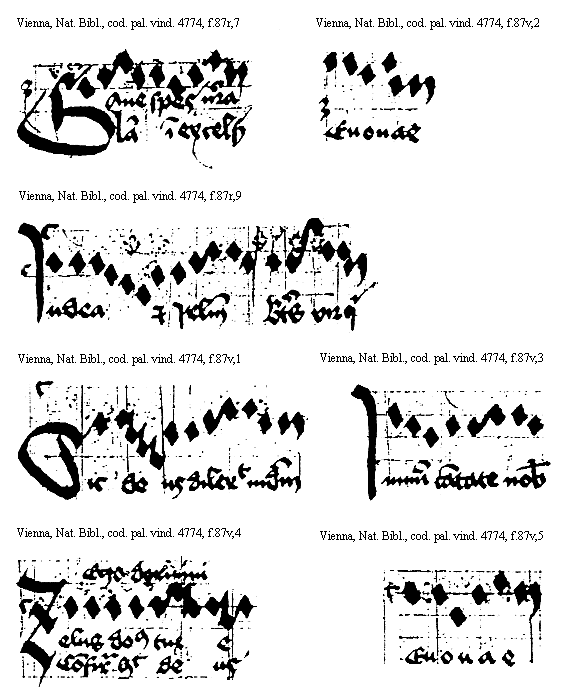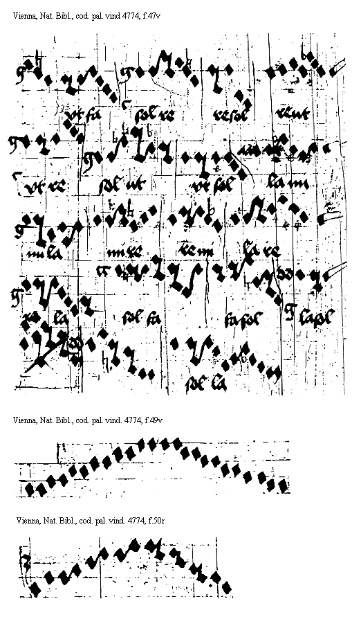 [Vienna, Nationalbibliothek, cod. pal. vind. 4774, f.86v,3; text: dyapason, dyapaente, dyatesseron, G, a, [sqb], c, d, e, f, g]