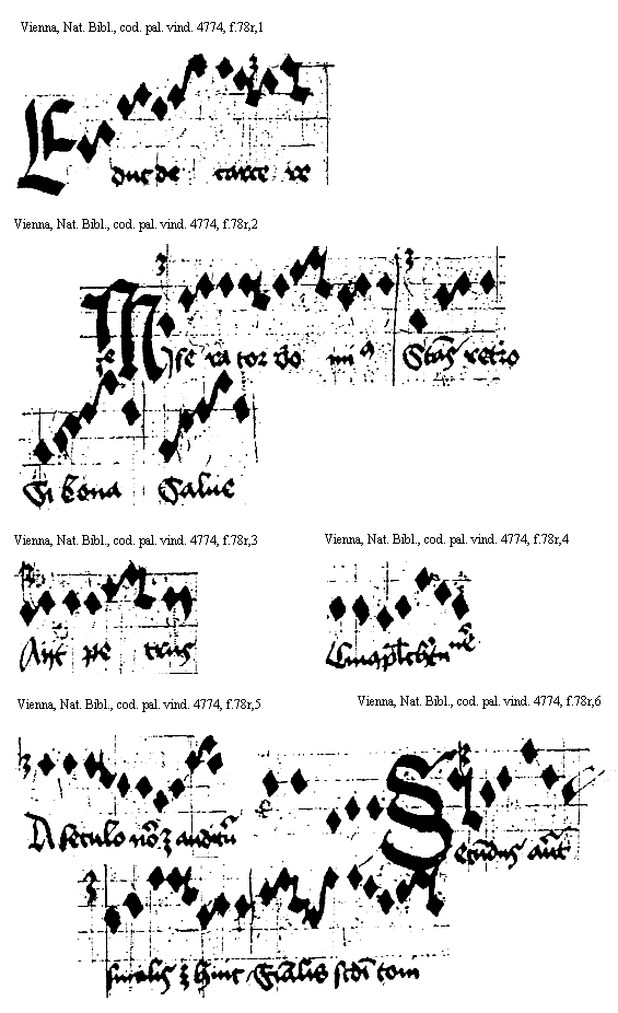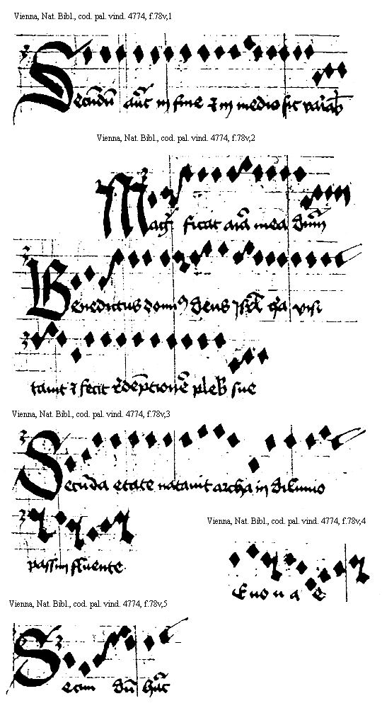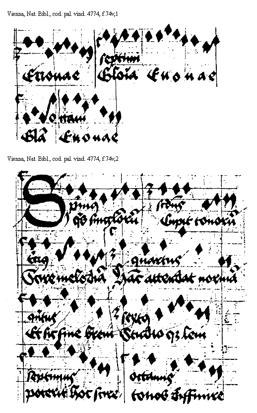 [Vienna, Nationalbibliothek, cod. pal. vind. 4774, f.78r,6; text: Secundus autem finalis est huic, Finalis secundi toni]