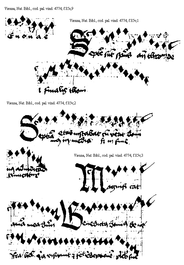[Vienna, Nationalbibliothek, cod. pal. vind. 4774, f.85v,3; text: Magnificat anima mea dominum, Benedictus dominus deus Israhel quia visitauit et fecit redemptionem plebis sue]