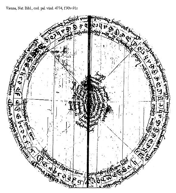 [f.90v/91r][Vienna, Nationalbibliothek, cod. pal. vind. 4774, f.90v/91r; text: Dyapason primi toni, Dyapason tercii toni, Dyapason quinti toni, Dyapason septimi toni, Dyapason secundi toni libere, Dyapason quarti toni libere, Dyapason sexti toni libere, Dyapason octaui toni libere, C, D, E, F, G, a, [sqb], c, d, e, A, f, b, g, [Gamma], B, Clima ptongus domicilium, Autentus primus tonus dorius, Autentus tercius tonus frigius, Autentus quintus tonus lidius, Autentus septimus tonus mixolidius, Plagalis secundus tonus yppodorius, Plagalis quartus tonus yppofrigius, Plagalis sextus tonus yppolidius, Plagalis octauus tonus yppomixolidius]