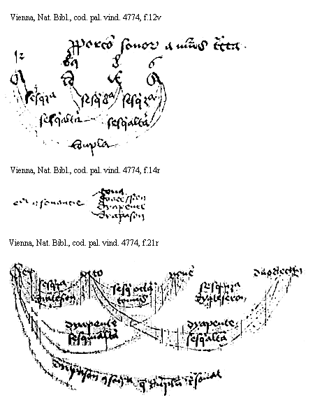 [Vienna, Nationalbibliothek, cod. pal. vind. 4774, f.23r; text: dyateseron, dyapente, A, b[sqb], C, D, E, F, G, a, b, c]
