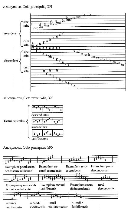 [Anonymous, Ars organisandi, 391; text: ascendens, descendens, sine saltu, cum saltu, cut, dre, emi, ffa, gsol, ala, bmi, cfa, dsol, ela, a, b, c, d, e, f, g, ut, re, mi, fa, sol, la, ff, bh]