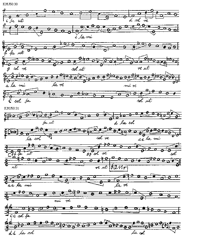 [KMJ50:30; text: c fa ut, d sol re, e la mi, f fa ut, g sol re, sol ut, re ut, a la mi, la re, mi re, c sol fa, sol ut]