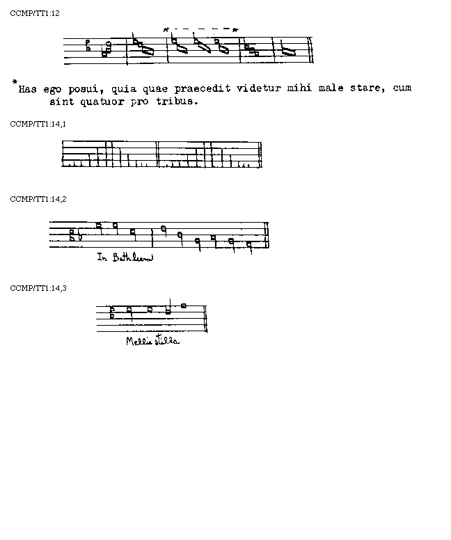 [CCMP/TT1:12; text: Has ego posui, quia qaue praecedit videtur mihi male stare, cum sint quatuor pro tribus.]