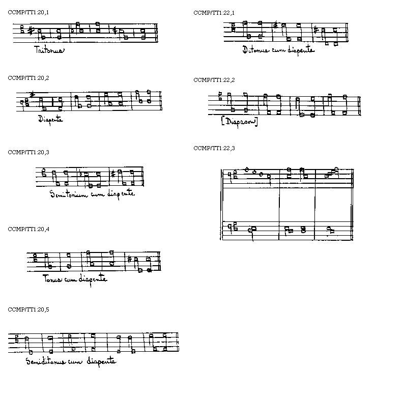 Fuit autem inventa falsa musica propter duas causas, scilicet, causa necessitatis et causa pulchritudinis cantus per se. Causa necessitatis, quia non poteramus habere diapente, diatessaron, diapason, ut in locis visis in capitulo de proportionibus. Causa pulchritudinis, ut patet in cantilenis [ms.: cantinellis] coronatis.