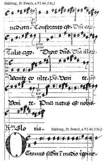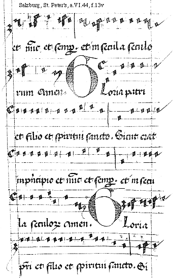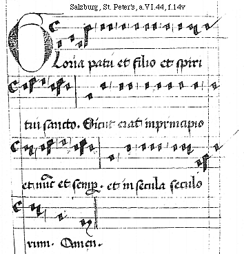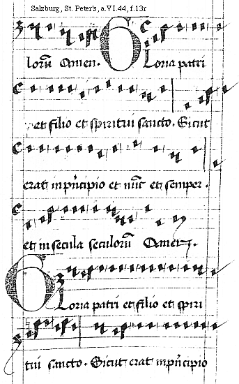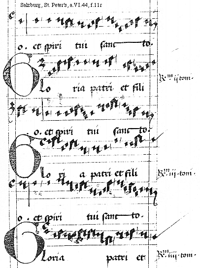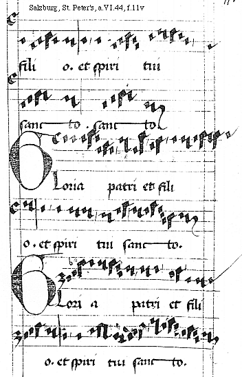 [Salzburg, St. Peter's, a.VI.44, f.10v; text: Gloria patri et fili]