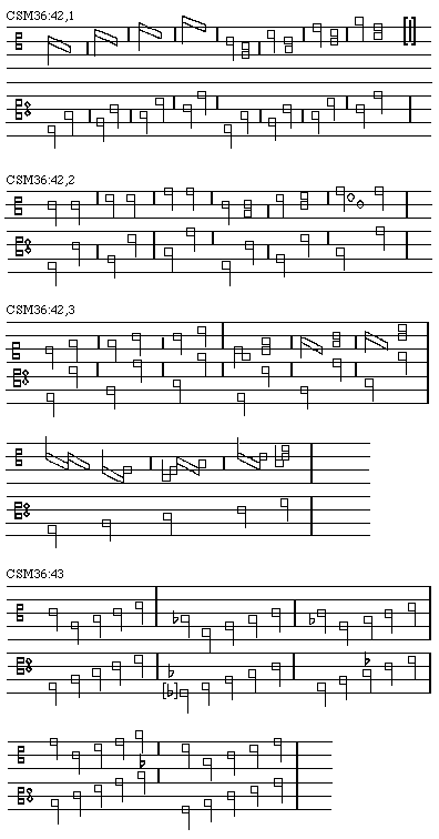 Et nota quod, si tu cantas mi in b fa [sqb] my acuto, oportet te dicere etiam my in f fa ut acuto per falsam musycam et signum facere taliter formatum [sqb], sicut poteris videre exemplo sequenti: