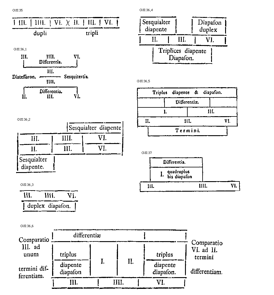 [GSI:36,1; text: III. IIII. VI. Differentia. Diatessaron. Sesquitertia. II.]