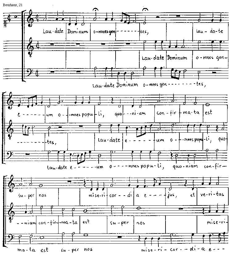 [Beurhaus, 21; text: Laudate Dominum omnes gentes, laudate eum omnes populi, quoniam confirmata est super nos misericordia ejus, et veritas]
