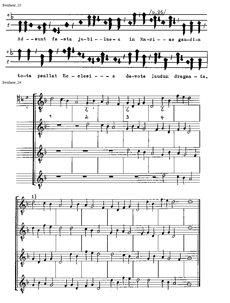 [Beurhaus, 23; text: /p.26/, Adsunt festa jubilaea in Mariae gaudia tota psallat Ecclesia devote laudum dragmata.]
