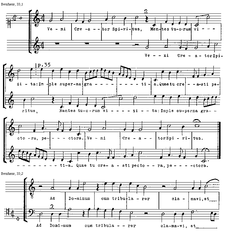 [Beurhaus, 33,1; text: /p.35/, Veni Creator Spiritus, Mentes tuorum visita: /p. 35/ Imple superna gratia. Quae tu creasti pectora]
