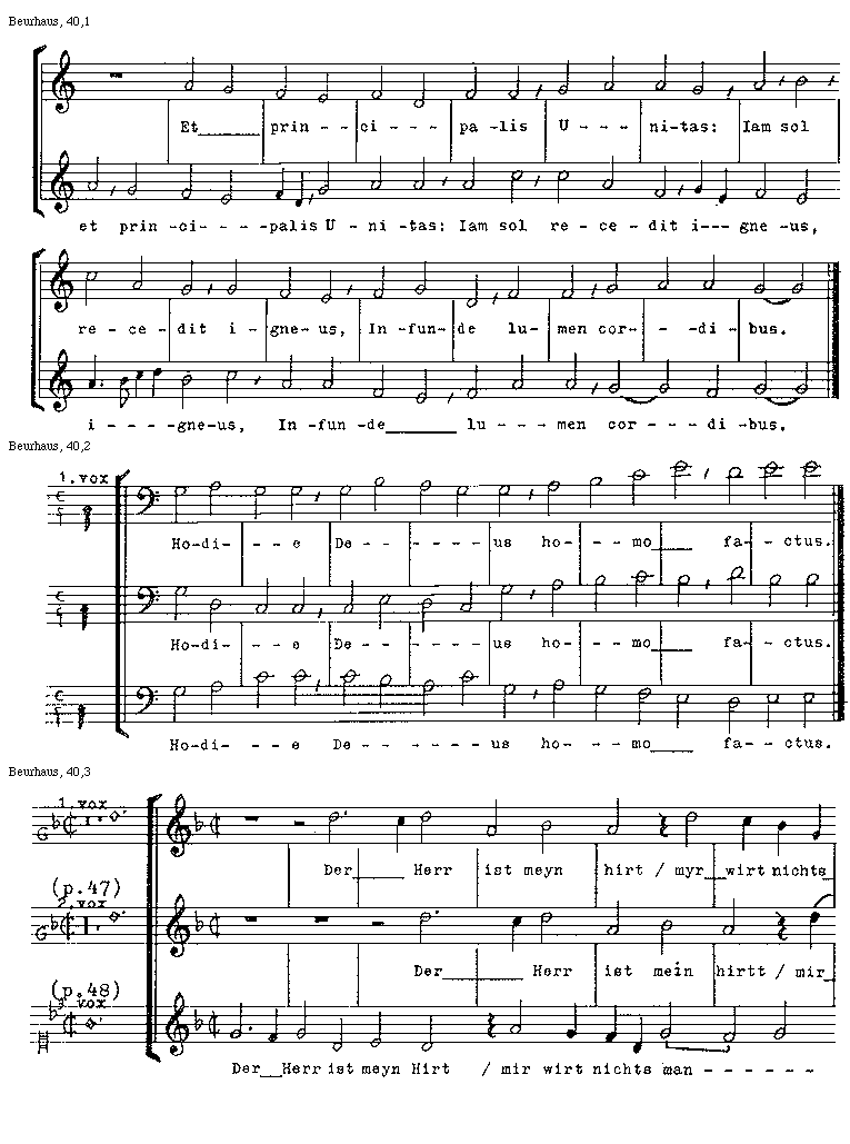 [Beurhaus, 39,1; text: /p.43/, /p.44/, prima, secunda vox]