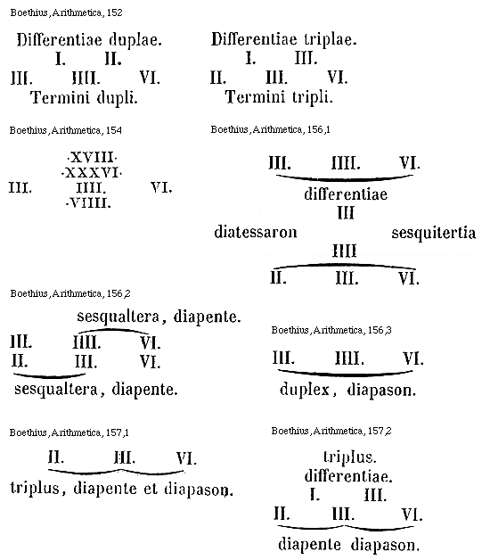 [Boethius, Arithmetica, 156,3; text: duplex, diapason, III. IIII. VI.]
