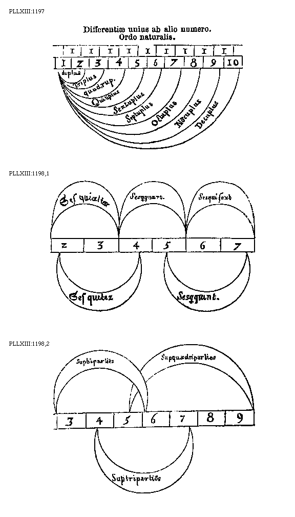 [PLLXIII:1197; text: Differentiae unius ab alio numero. Ordo naturalis. 1, 2, 3, 4, 5, 6, 7, 8, 9, 10, duplus, Triplus, quadruplus, Quitiplus, Sextuplus, Septuplus, Octuplus, Noncuplus, Decuplus]