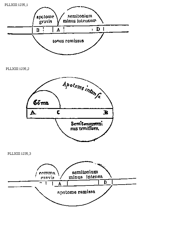 [PLLXIII:1235,2; text: Apotome intensa, Comma, A, C, B, Semitonium minus remissum]
