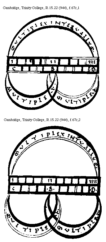 [Cambridge, Trinity College, R.15.22 (944), f.67r,2; text: Multiplex interuallum, Multiplex, I, II, IIII, C, .B. .D.]