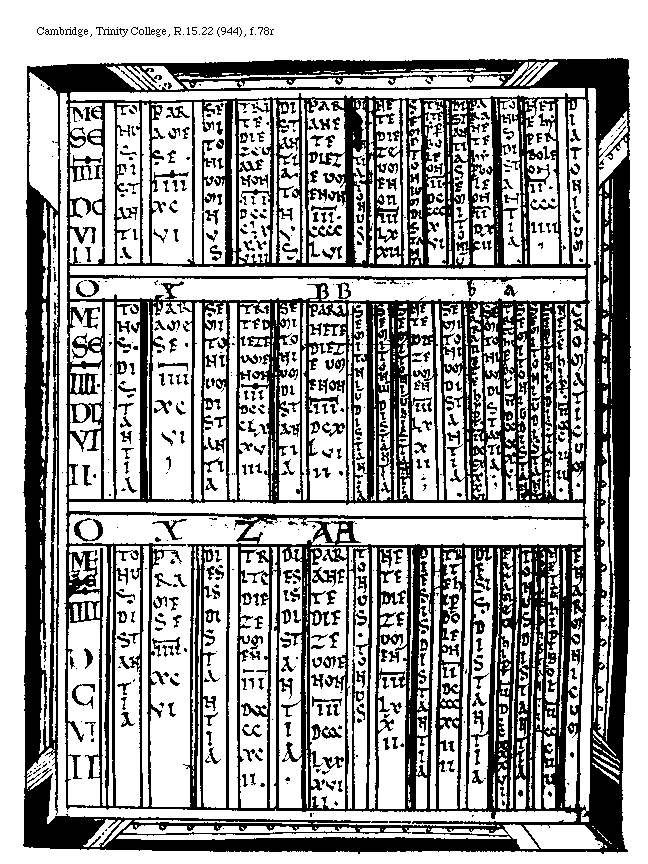 [Cambridge, Trinity College, R.15.22 (944), f.91r; text: A, B, C, D, E, F, K]