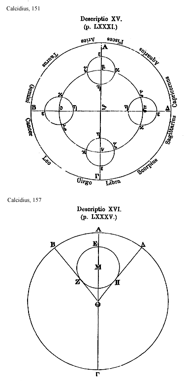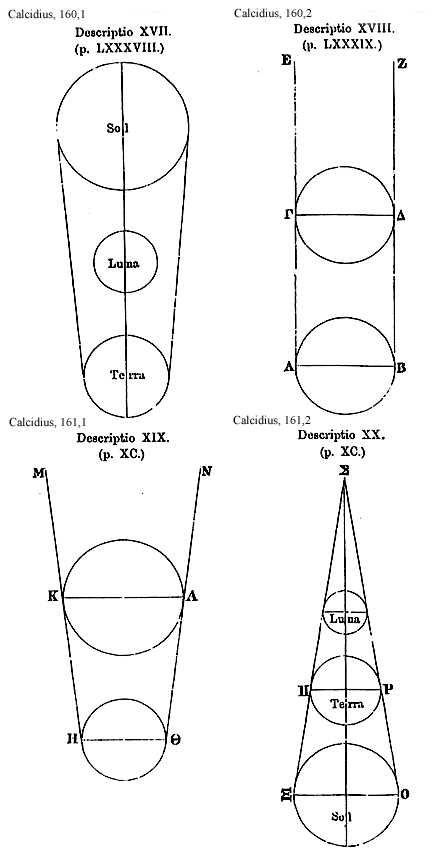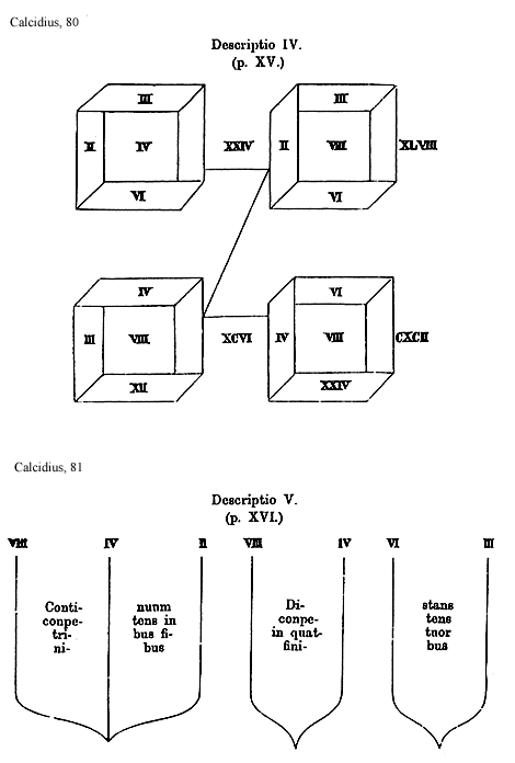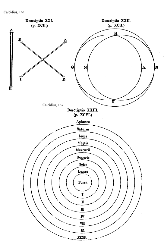 Source:Platonis Timaeus interprete Chalcidio cum eiusdem commentario, ed. Ioh. Wrobel (Leipzig: B. G. Teubner 1876; reprint ed., Frankfurt am Main: Minerva, 1963).