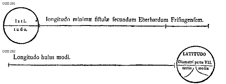 [GSII:281; text: latitudo. longitudo minimae fistulae secundum Eberhardum Frisingensem.]
