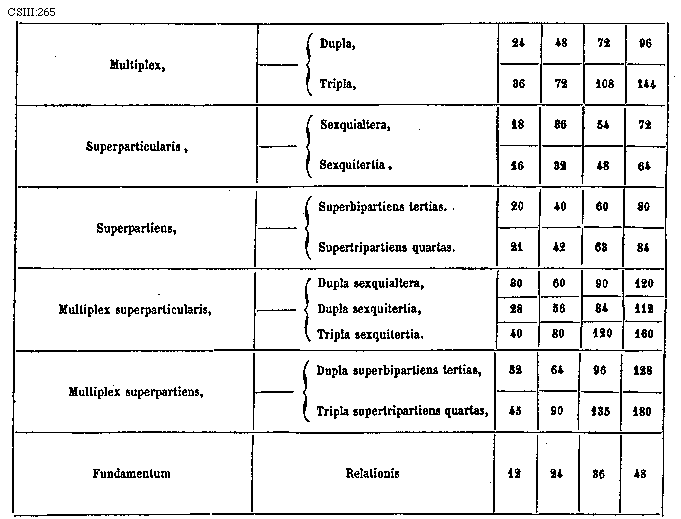 [266]Proportio est habitudo duorum terminorum ad invicem, vel distantia duorum terminorum inter se; cujus quinque sunt genera, scilicet multiplex, superparticulare, superpartiens, multiplex superparticulare, et multiplex superpartiens.