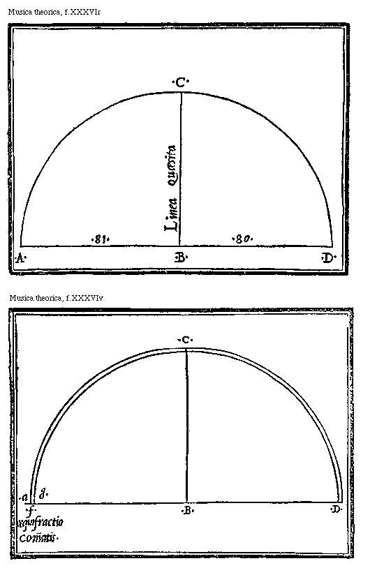 [Musica theorica, f.XXXVIr; text: A, B, C, D, 81, 80, Linea Quaesita]