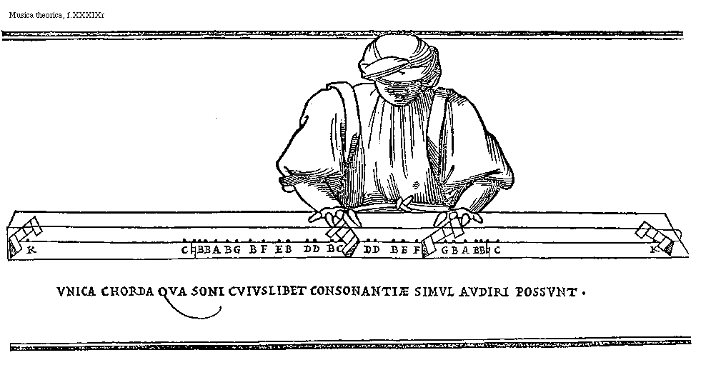 Monochordi diuisionem unam quidem rationi tantum et speculationi subiectam: construximus: nunc aliam: quae aurium iudicio subiiciatur: oportet inquirere: ut quod prius demonstratum est ratione: id etiam sensu et experientia comprobetur: quippe In musicis duo sunt iudices: uidelicet sensus et ratio: quibns adinuicem non discrepantibus perfectissima de sonis harmonicis habetur notitia: Monochordi igitur