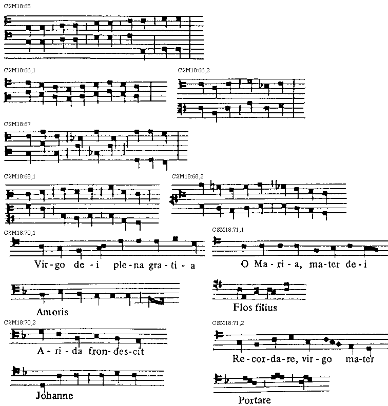[CSM18:71,1; text: O Maria, mater dei, Flos filius]