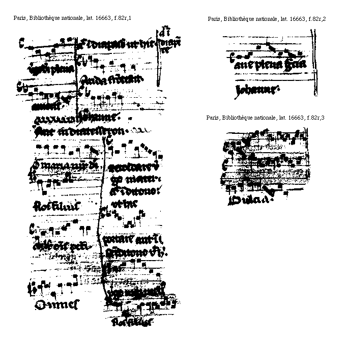 [Paris, Bibliotheque nationale, lat. 16663, f.82r,2; aue plena gracia, Iohanne.]