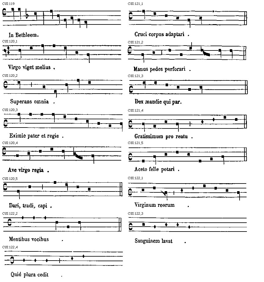 Source:Scriptorum de musica medii aevi nova series a Gerbertina altera, 4 vols., ed. Edmond de Coussemaker (Paris: Durand, 1864-76; reprint ed., Hildesheim: Olms, 1963), 1:117–36.